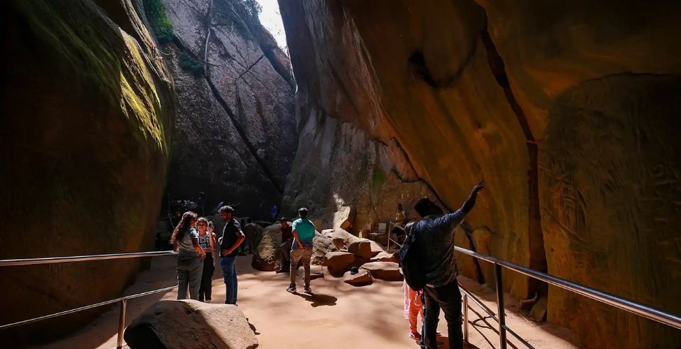 When you finally enter the caves, you’ll see prehistoric carvings — geometric patterns, animals and human figures. Some of the Edakkal Caves are believed to date back over 6,000 years. Besides, these are no ordinary caves. The structure is actually a massive rock fissure formed when a huge boulder wedged itself between two larger stones.